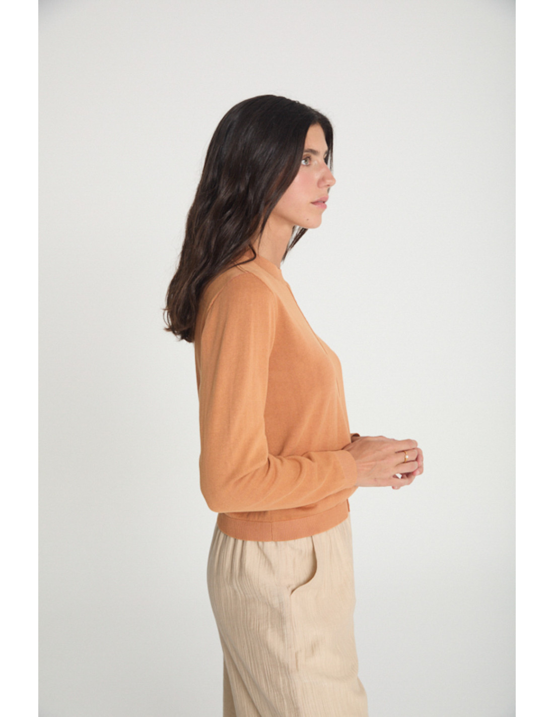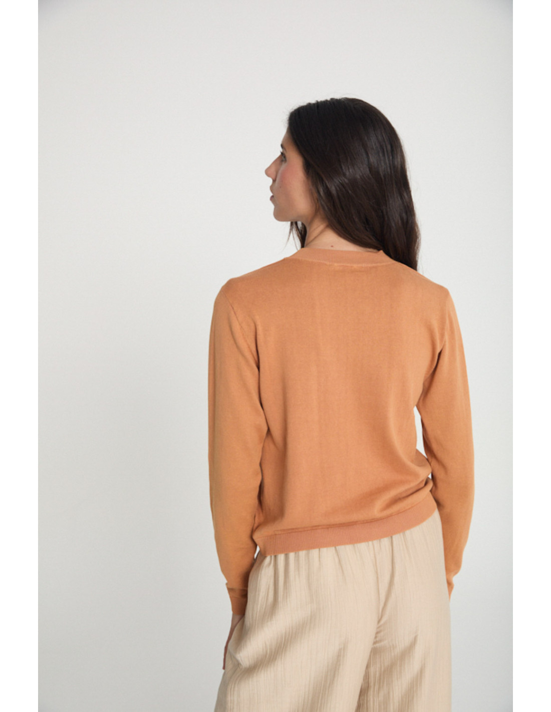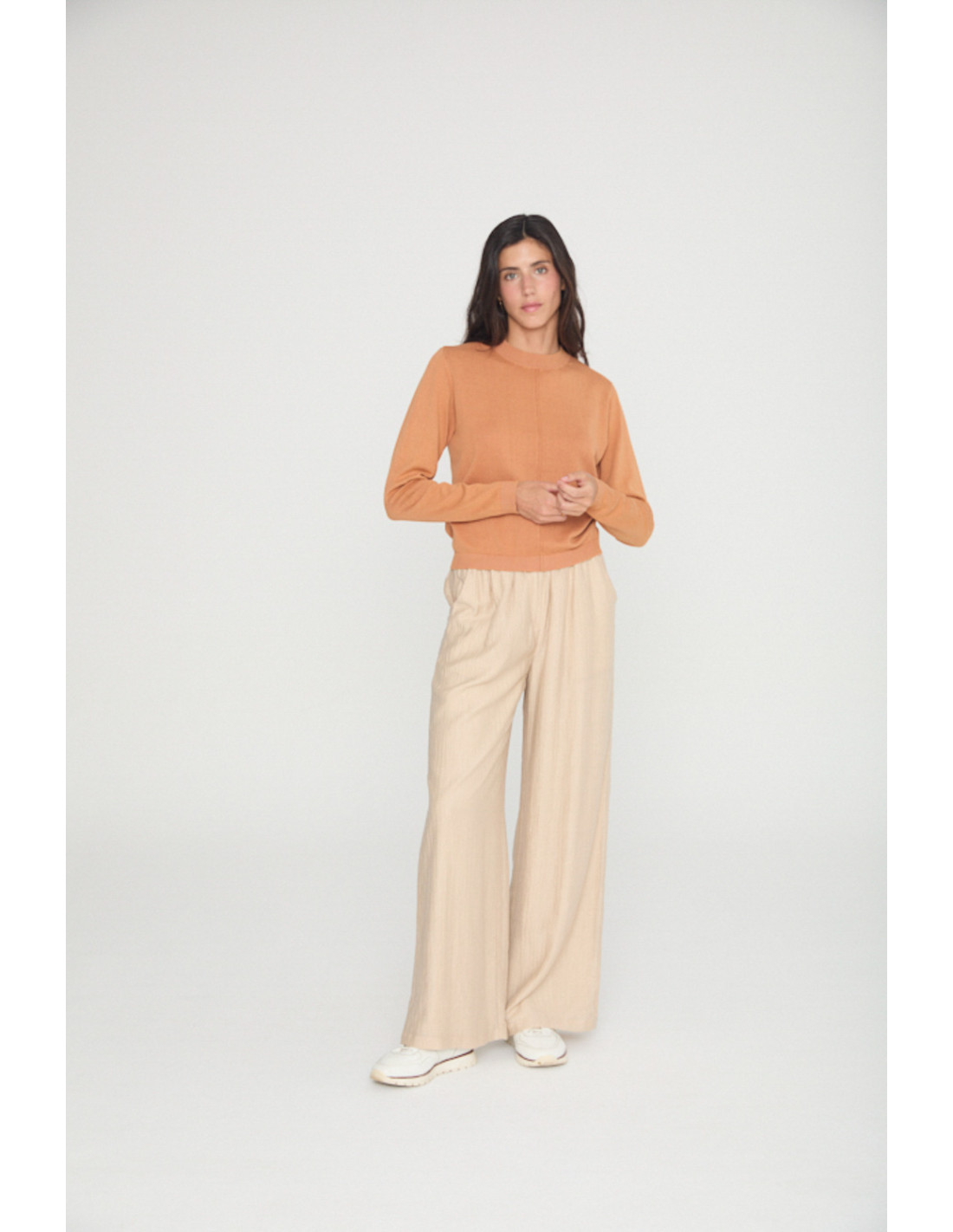 Pullover with round neck and long sleeves. Timeless design with ribbing on the front and on the seams. Ribbed collar, hem and cuffs. Stone washed effect fabric.