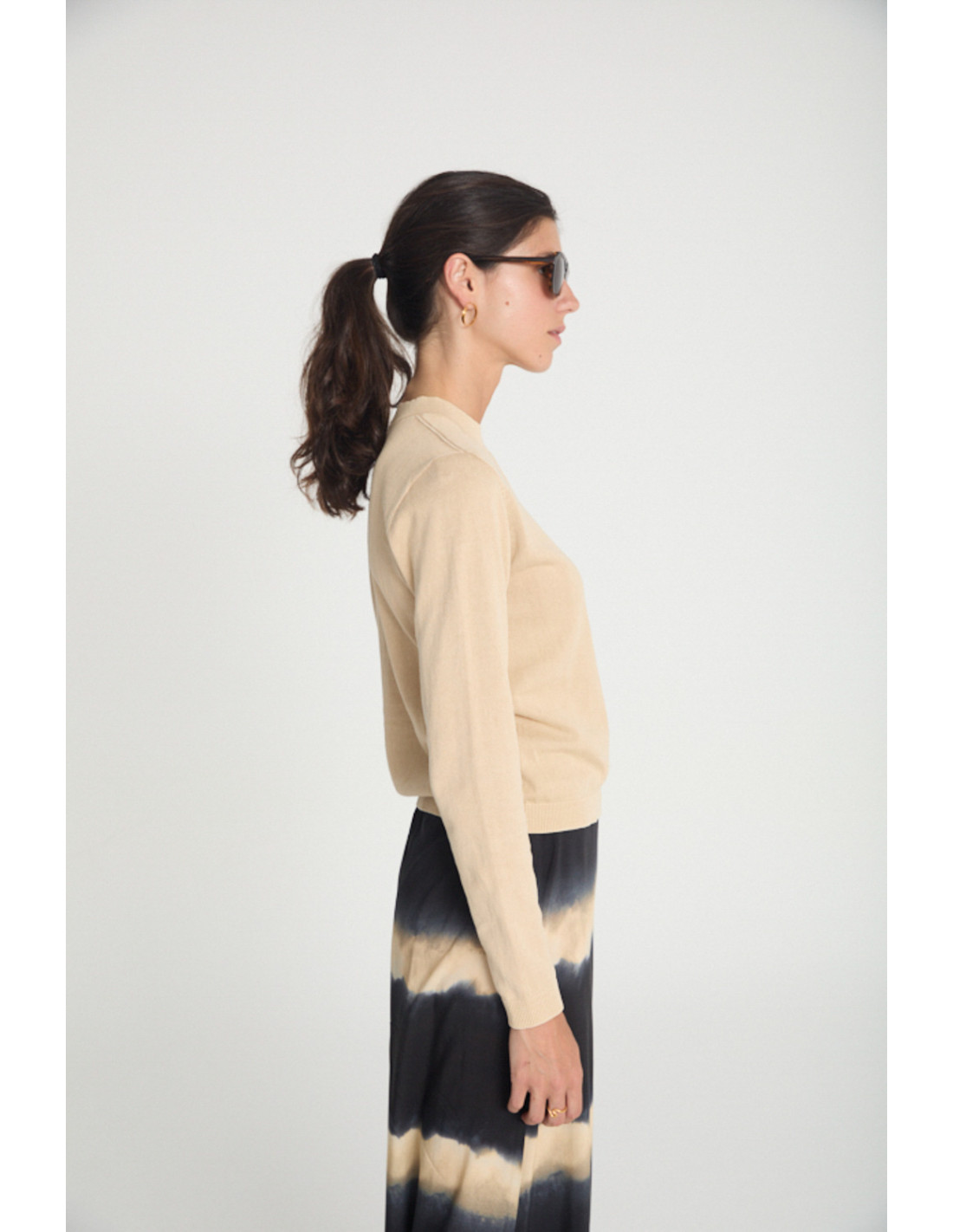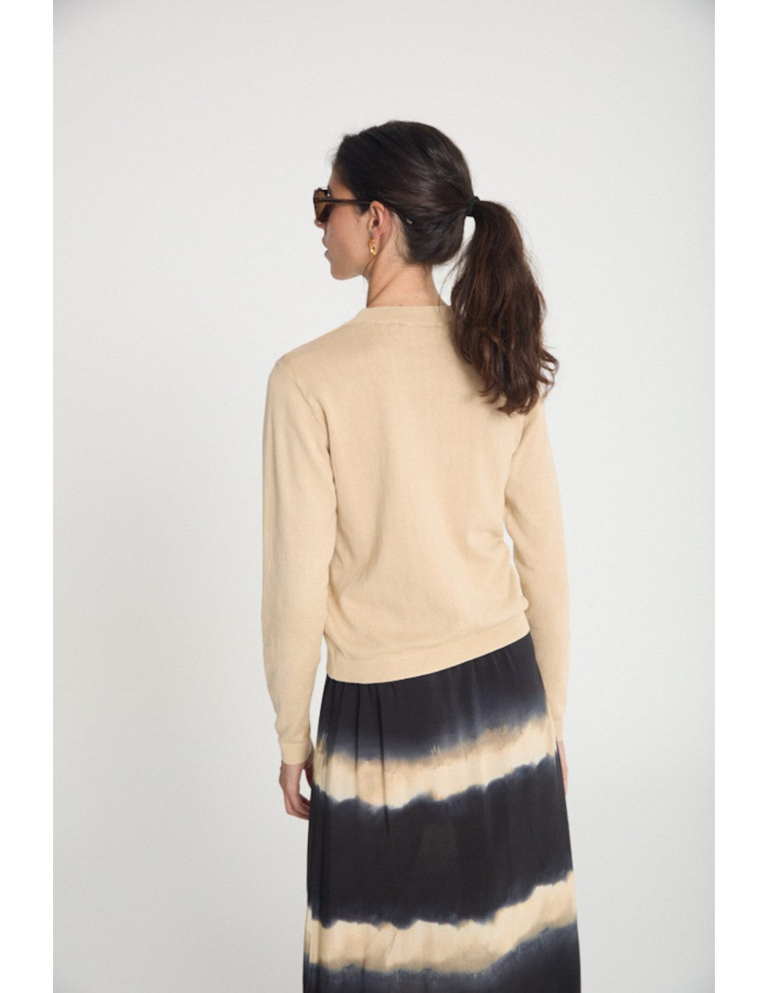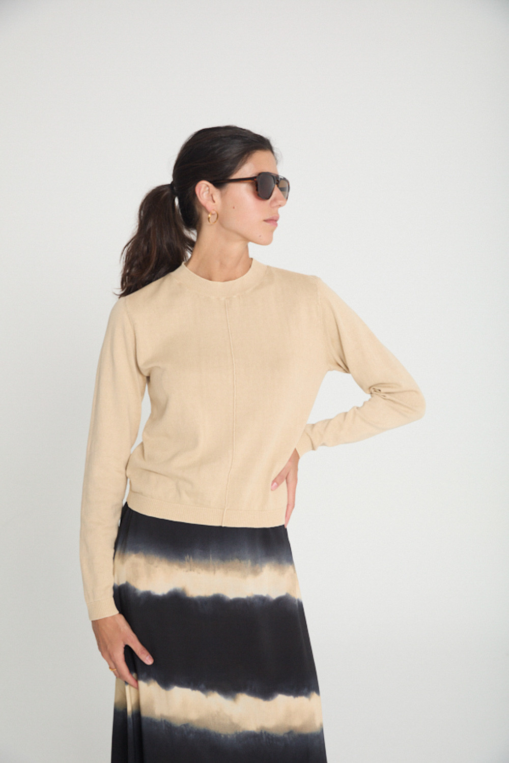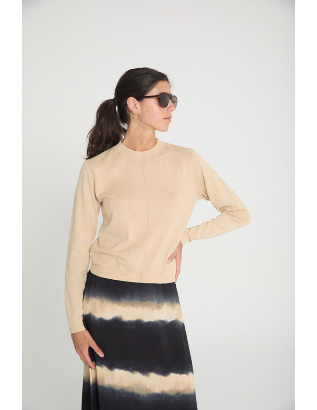 Pullover with round neck and long sleeves. Timeless design with ribbing on the front and on the seams. Ribbed collar, hem and cuffs. Stone washed effect fabric.